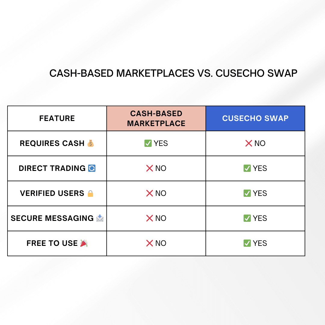 It’s more than just an app. Cusecho Swap is a new way to live, spend smarter, and connect meaningfully.